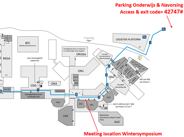 For parking by car, please follow the signs ‘Parking Onderwijs & Navorsing’ and use code 42747# to enter AND exit.