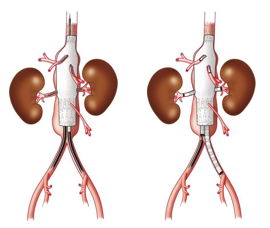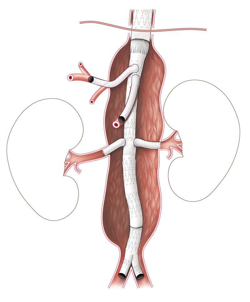 Als het gaat om een uitgebreid aneurysma, waarbij de buikslagader tot op het niveau van de nierslagaders of erboven verbreed is, is een behandeling met een gewone endoprothese niet mogelijk.
