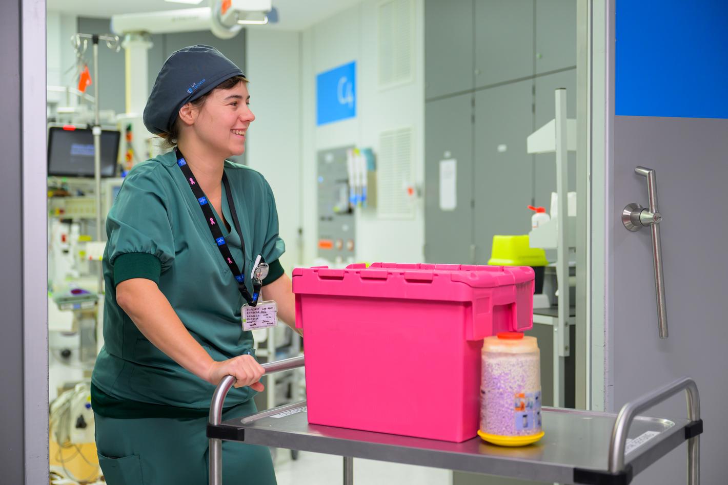 Kristien Depraetere, duurzaamheidscoördinator in UZ Leuven: “De afvalberg in de zorgsector groeit enorm. Duurzaam materiaalgebruik is niet voor niets een van de topprioriteiten van UZ Leuven op het vlak van ecologie. Met dit recyclageproject zetten we een belangrijke stap in milieubewust materiaalgebruik, waarmee we de afvalstromen in het ziekenhuis willen afbouwen. We hergebruiken ook al groene sterilisatiedoeken in het operatiekwartier en werken aan oplossingen voor de kunststof schaaltjes en andere materialen in het ziekenhuis. Samen met een aantal commerciële partners zoeken we verder naar nieuwe mogelijkheden om zorgafval een nuttige bestemming te geven.”