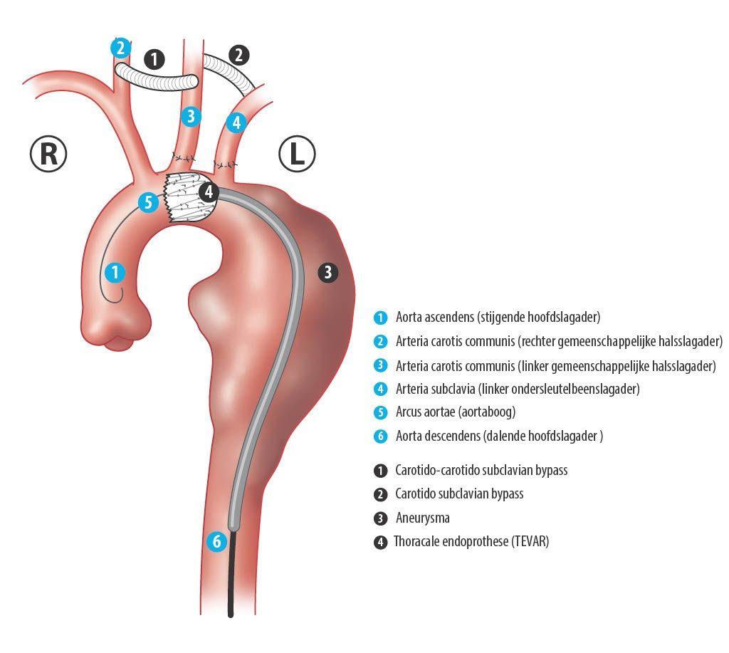 In sommige gevallen is het nodig om ook een zijtak van de borstslagader (naar hoofd of arm) te bedekken met de prothese om een goede afdichtingszone te verkrijgen.
