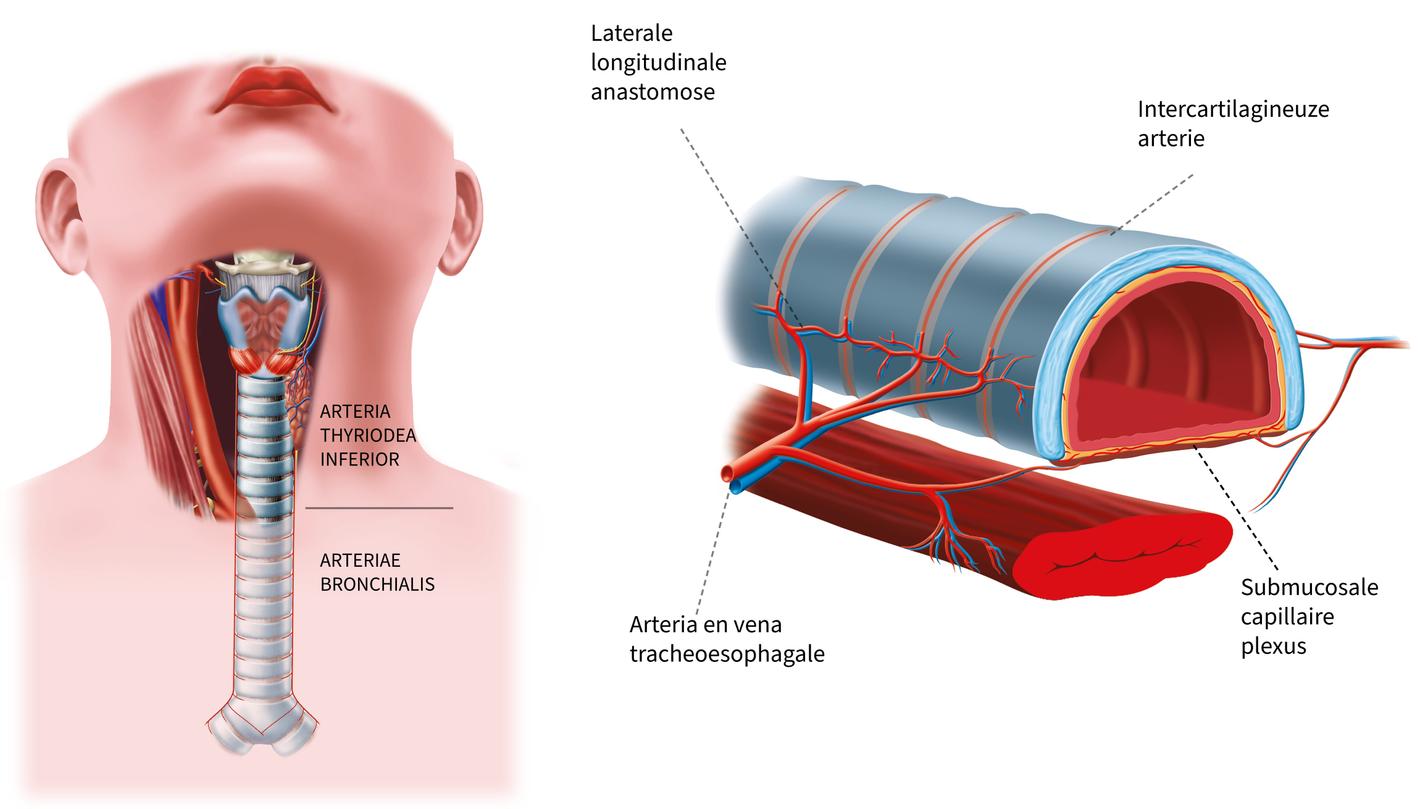 Het rijke vasculaire netwerk onder de endotracheale mucosa komt van transversale intercartilagineuze arteries die op hun beurt ontstaan vanuit een laterale longitudinale anastomose.