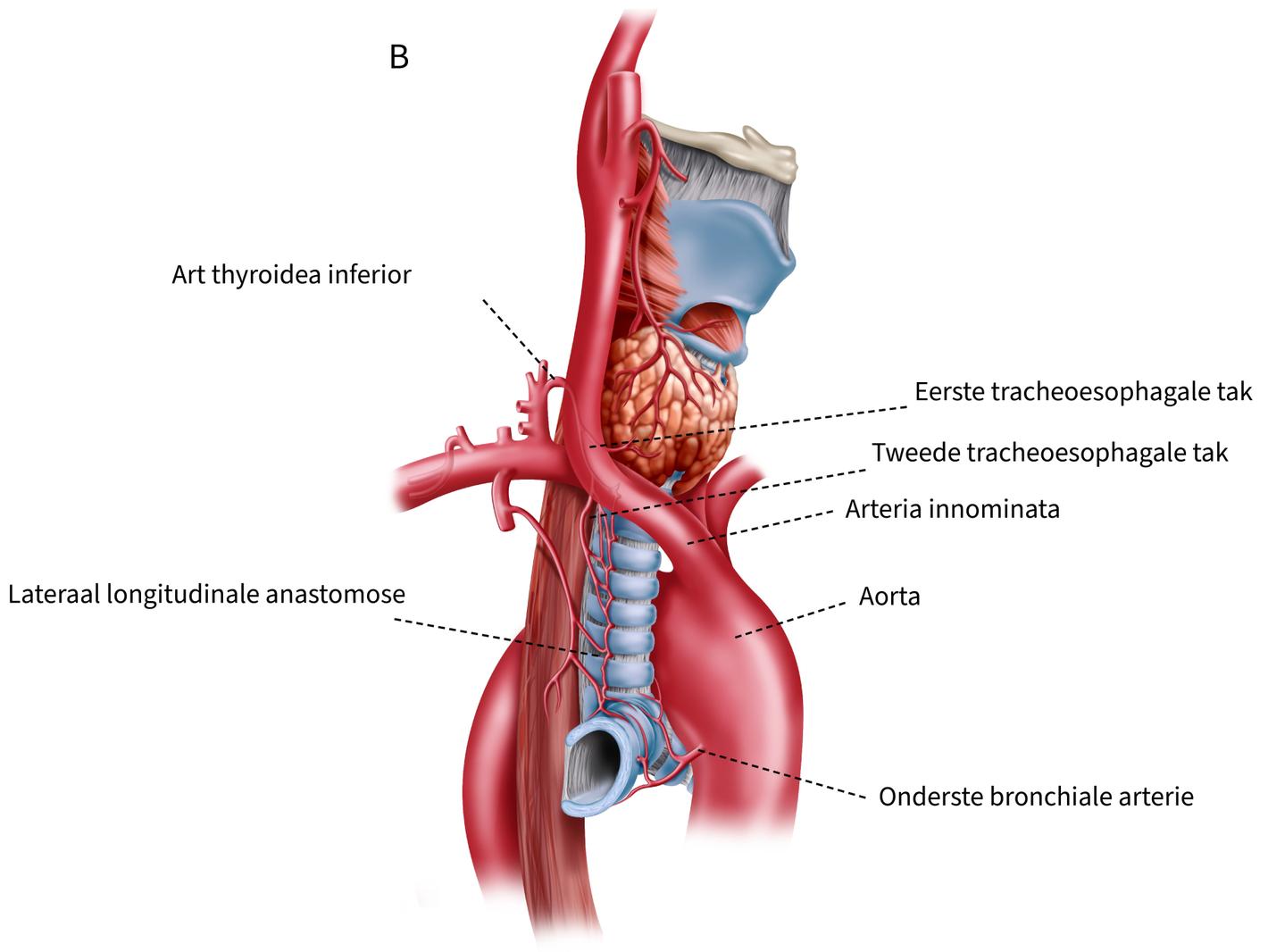 Figuur 1.1.6 Bloedvoorziening van de trachea - rechter schuin vooraanzicht