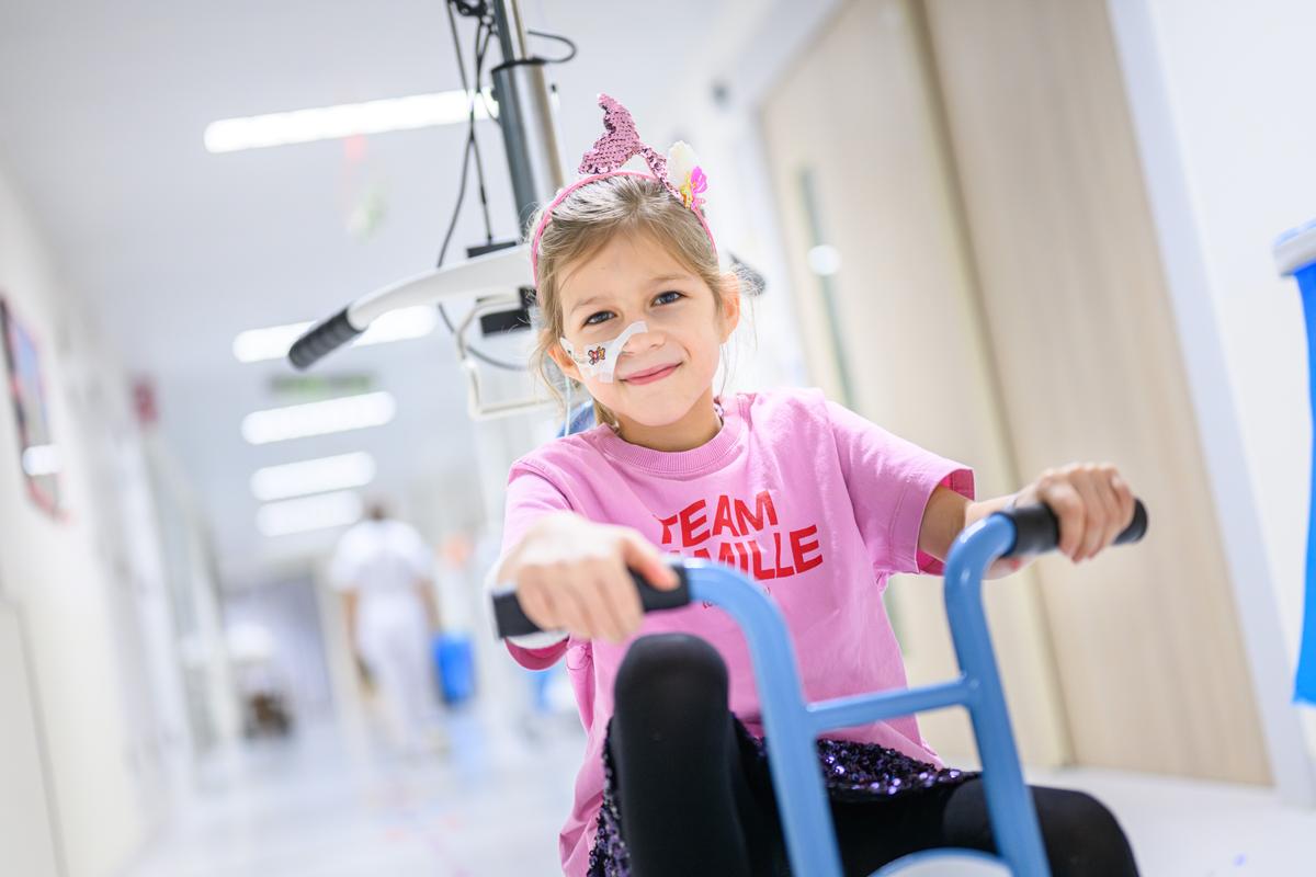 Ilse Ruysseveldt, coördinator van het KITES-zorgteam: “Een infuuts is een speciaal aangepaste driewieler waarin een infuuspaal verwerkt is. Onze jonge patiënten kunnen zo zorgeloos fietsen of buiten spelen, zonder voortdurend rekening te moeten houden met slangetjes of standaarden. Gewoon even zorgeloos kind zijn. We zijn ontzettend dankbaar voor de jarenlange steun van de Lions Club aan de projecten van het Kinderkankerfonds Leuven.”