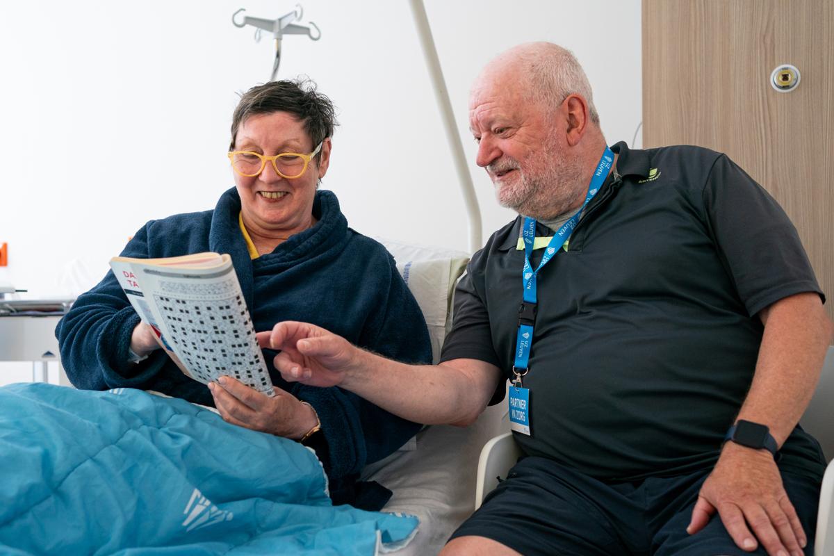 Reginald Alaerts, hoofdverpleegkundige hospitalisatie 31 (pneumologie): “Het proefproject gaf ons de kans om op kleinere schaal te testen of het nieuwe bezoekbeleid praktisch haalbaar was en effectief een meerwaarde bood. Na de testfase konden we alleen maar positief zijn. Een partner in zorg biedt in de eerste plaats emotionele steun, maar kan ook helpen bij dagdagelijkse handelingen, zoals ondersteuning bij eten geven, wassen, begeleiding naar een onderzoek, of communicatie met het zorgteam. We raden patiënten en hun partners in zorg aan om op voorhand te bespreken met het zorgteam welke taken ze kunnen en willen opnemen.”