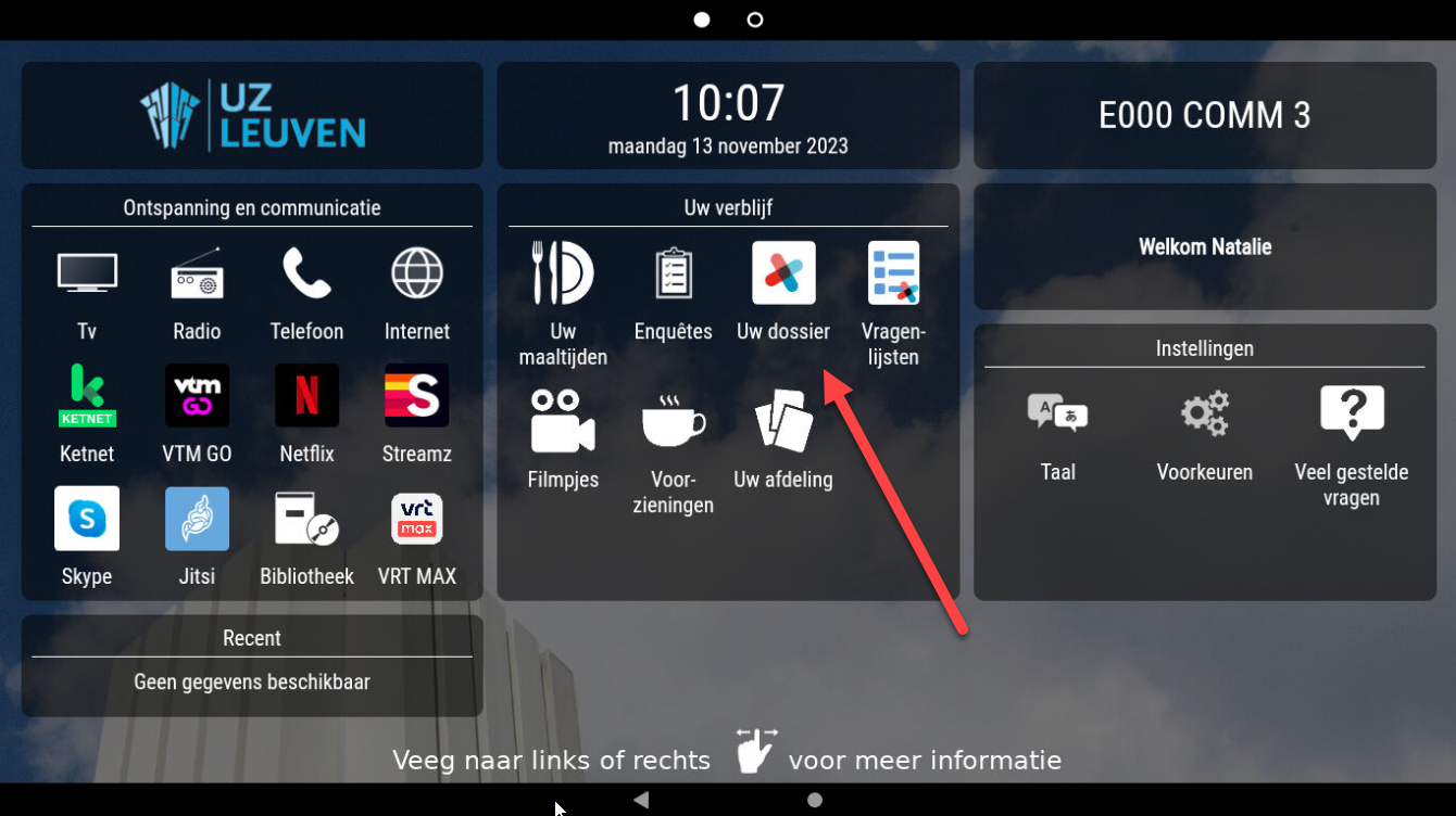 - Tik op het Octopuz-scherm onder de rubriek ‘Ontspanning en communicatie’ op de Jitsi-tegel.