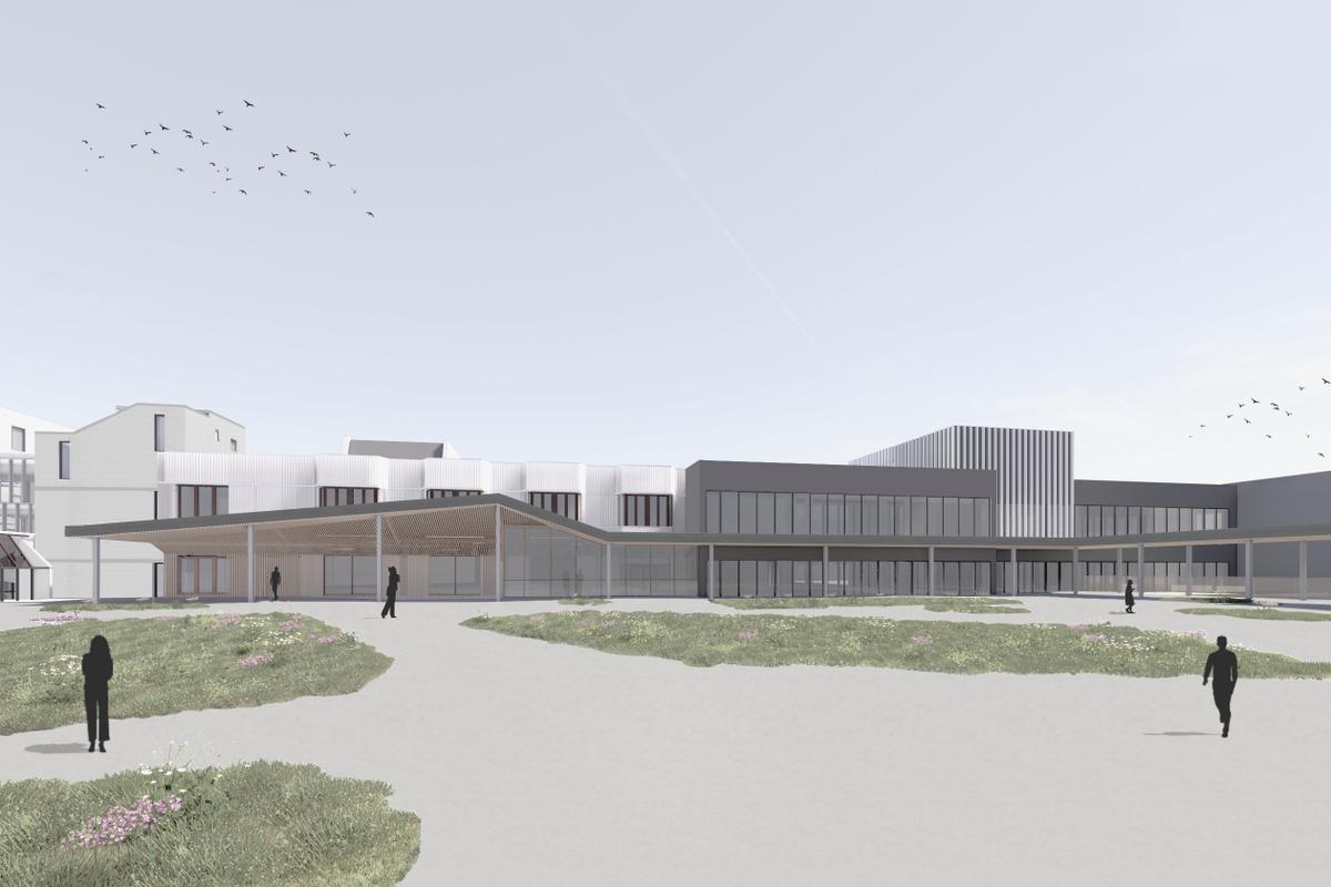 De toegang tot dit consultatieblok wordt voorzien via een nieuw aan te leggen onthaalplein op niveau 1.
